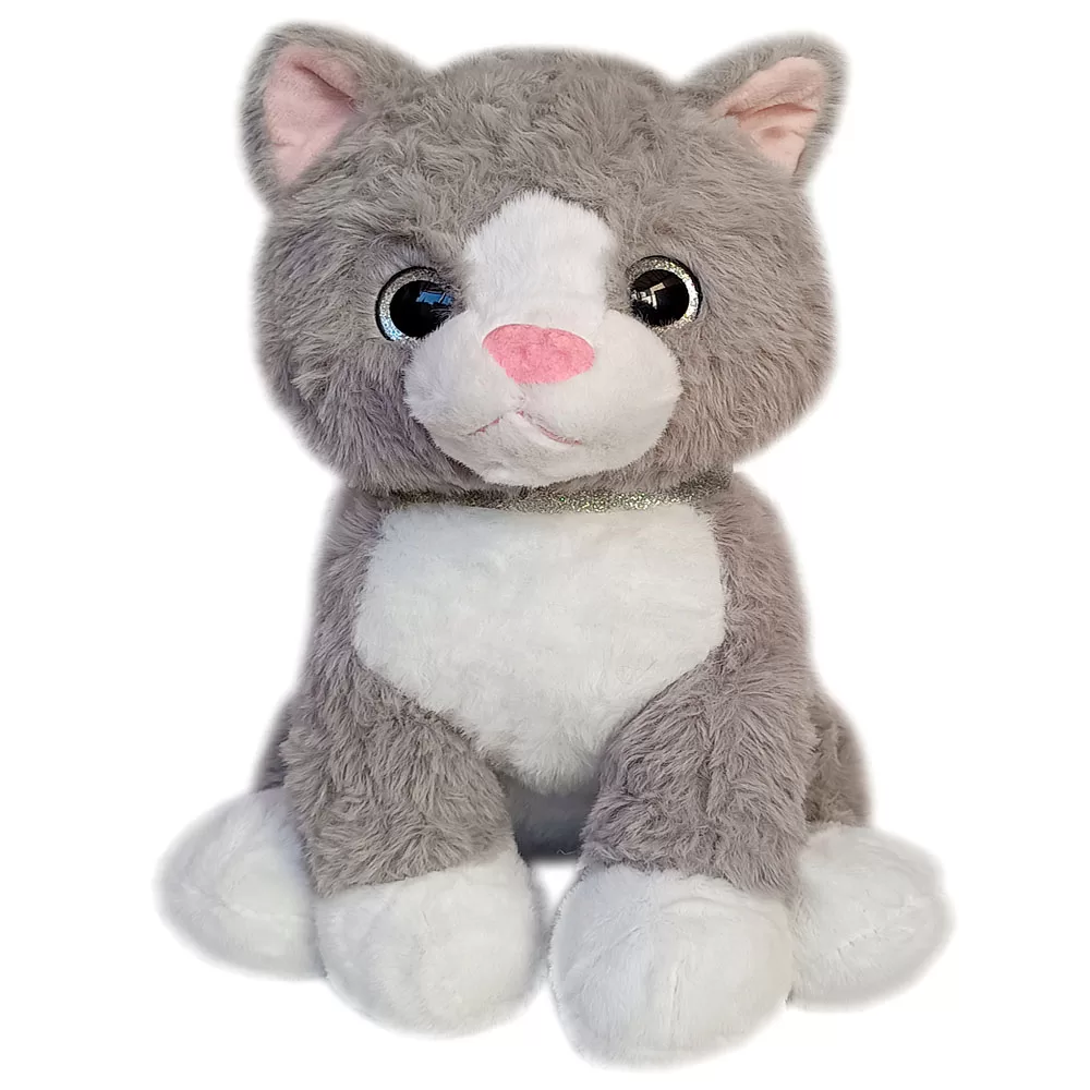 Gato de Pelúcia Cinza e Branco com Laço Cinza – 25 cm